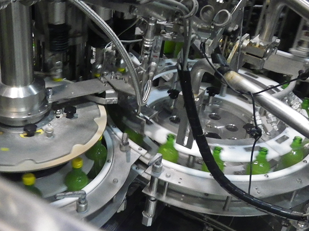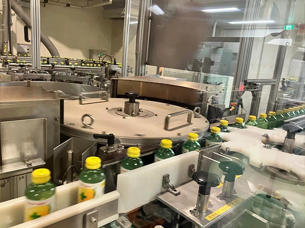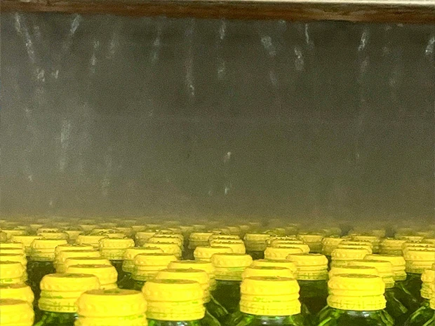 熱殺菌された調合液は容器に充填され、製品にキャップが装着されます。