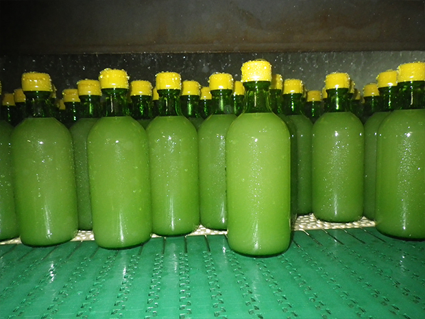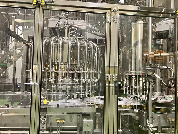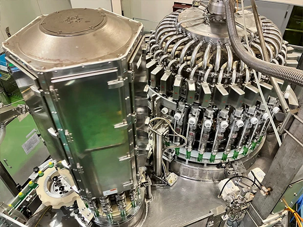 熱殺菌された調合液は容器に充填され、製品にキャップが装着されます。