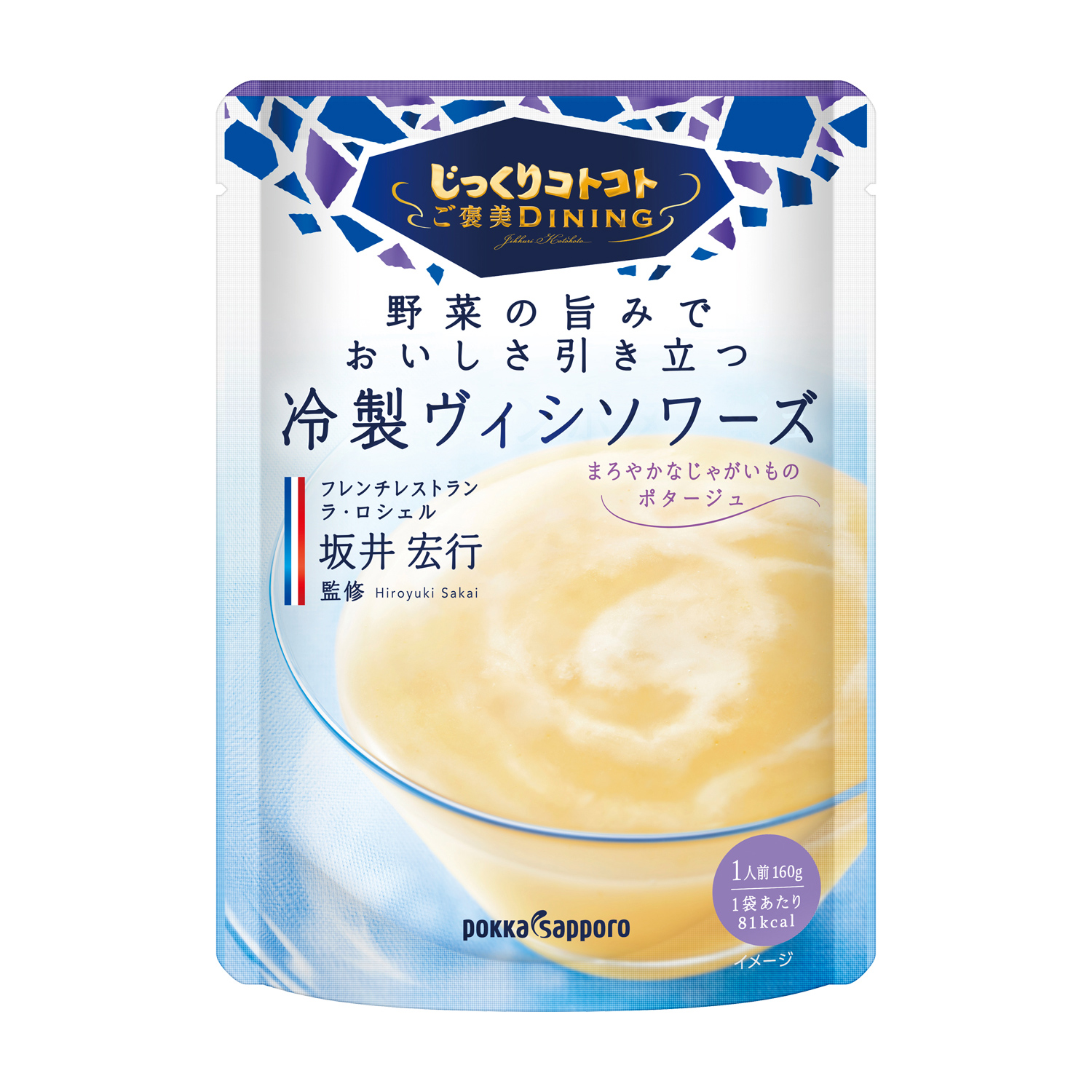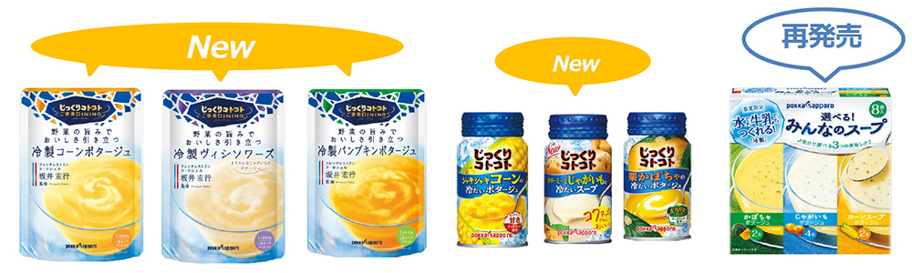 ポッカサッポロフード&ビバレッジ株式会社は、レトルトパウチスープでフレンチの巨匠 坂井宏行シェフが監修した、「じっくりコトコト ご褒美ダイニング 野菜の旨みでおいしさ引き立つ冷製コーンポタージュ袋」、「じっくりコトコト ご褒美ダイニング 野菜の旨みでおいしさ引き立つ冷製ヴィシソワーズ袋」、「じっくりコトコト ご褒美ダイニング 野菜の旨みでおいしさ引き立つ冷製パンプキンポタージュ袋」3品と、冷製缶入りスープ「じっくりコトコト クリーミーなじゃがいもの冷たいスープ170gリシール缶」を2019年2月18日(月)より全国で新発売します。