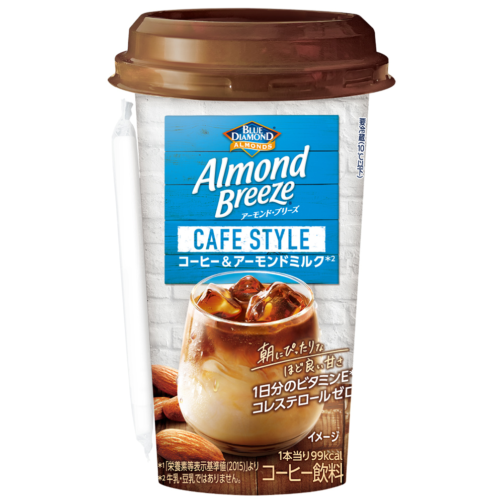 「アーモンド・ブリーズ カフェスタイル200mlカップ」は、カフェチェーンで飲用したいメニューとして人気のある「アーモンドミルクラテ」や「ソイラテ」などのように、ラテ系・オレ系の飲み物を手軽に日常に取り入れていただくために発売する商品です。カフェで飲むような味わいにこだわり、アラビカ豆(※2)を用いて生産工場で豆から抽出したコーヒーを使用することで、しっかりとしたコーヒーのコクを再現しました。アーモンドミルクをベースにすっきりとした甘さで仕上げた「カフェで飲むようなアーモンドミルクコーヒー」で、手軽にリフレッシュでき一日のスタートにオススメです。
