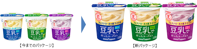 また、より多くのお客様に、特定保健用食品であることを認知し手にとっていただけるよう、「ソヤファーム 豆乳で作ったヨーグルト プレーン」、「ソヤファーム 豆乳で作ったヨーグルト アロエ」、「ソヤファーム 豆乳で作ったヨーグルト ブルーベリー」のパッケージを、トクホマークと機能性表示を大きく目立つ位置に配したデザインへとリニューアルし新たに発売します。ふたの開けやすさと開封時のヨーグルトの飛び散り改善のために容器も変更します。