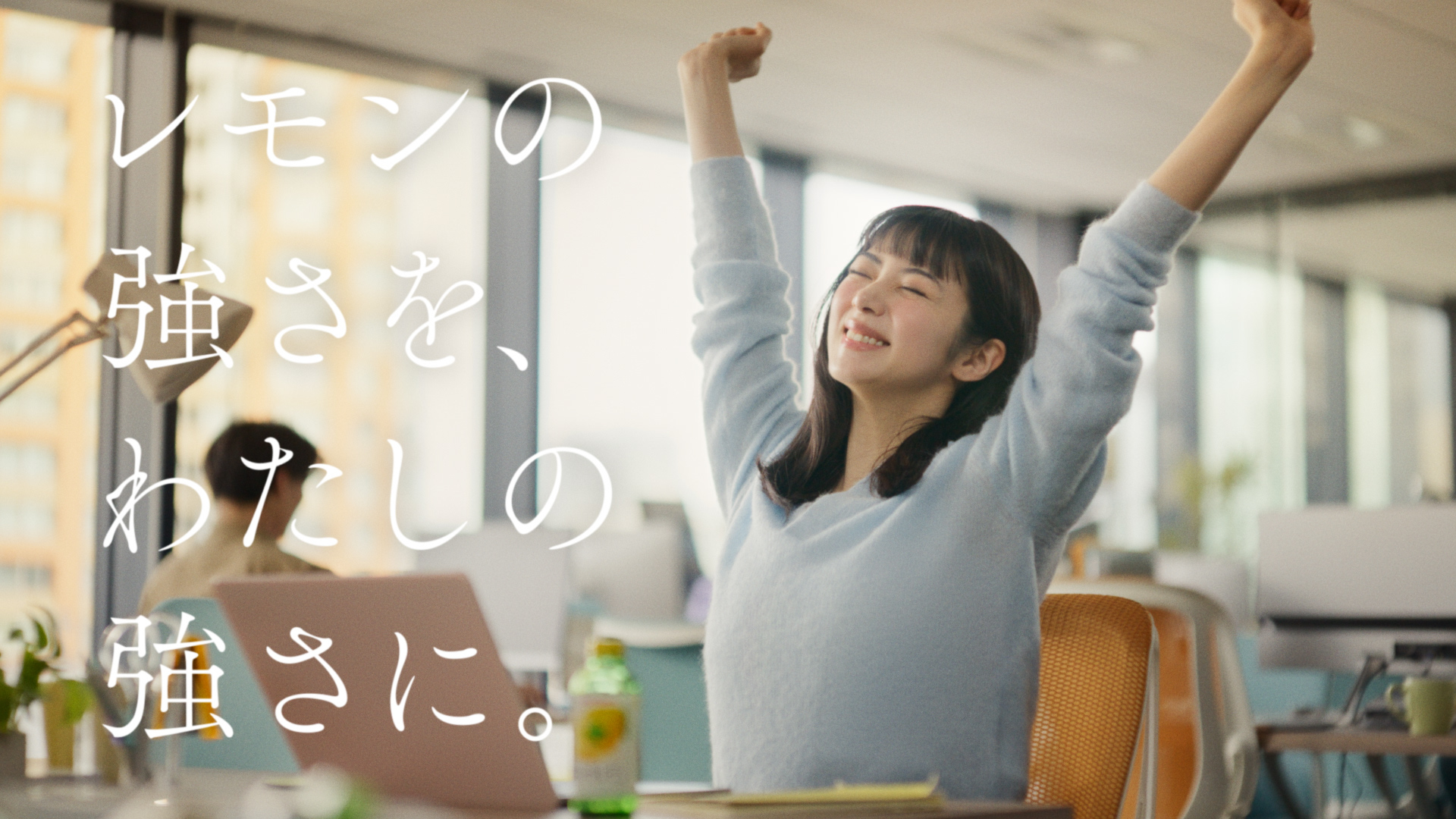本CMでは、キレートレモンが持つ「レモンまるごと」の価値が、日々の忙しさに立ち向かう人々の"自分らしい強さ"へとつながっていく様子を描いています。仕事やタスクに追われ、気づけば自分のことを後回しにしがちなシーンに寄り添い、「無理をしてもいい仕事はできない。もう自分を犠牲にしない。」というメッセージを通じて、前向きな頑張り方を応援する商品として表現しています。