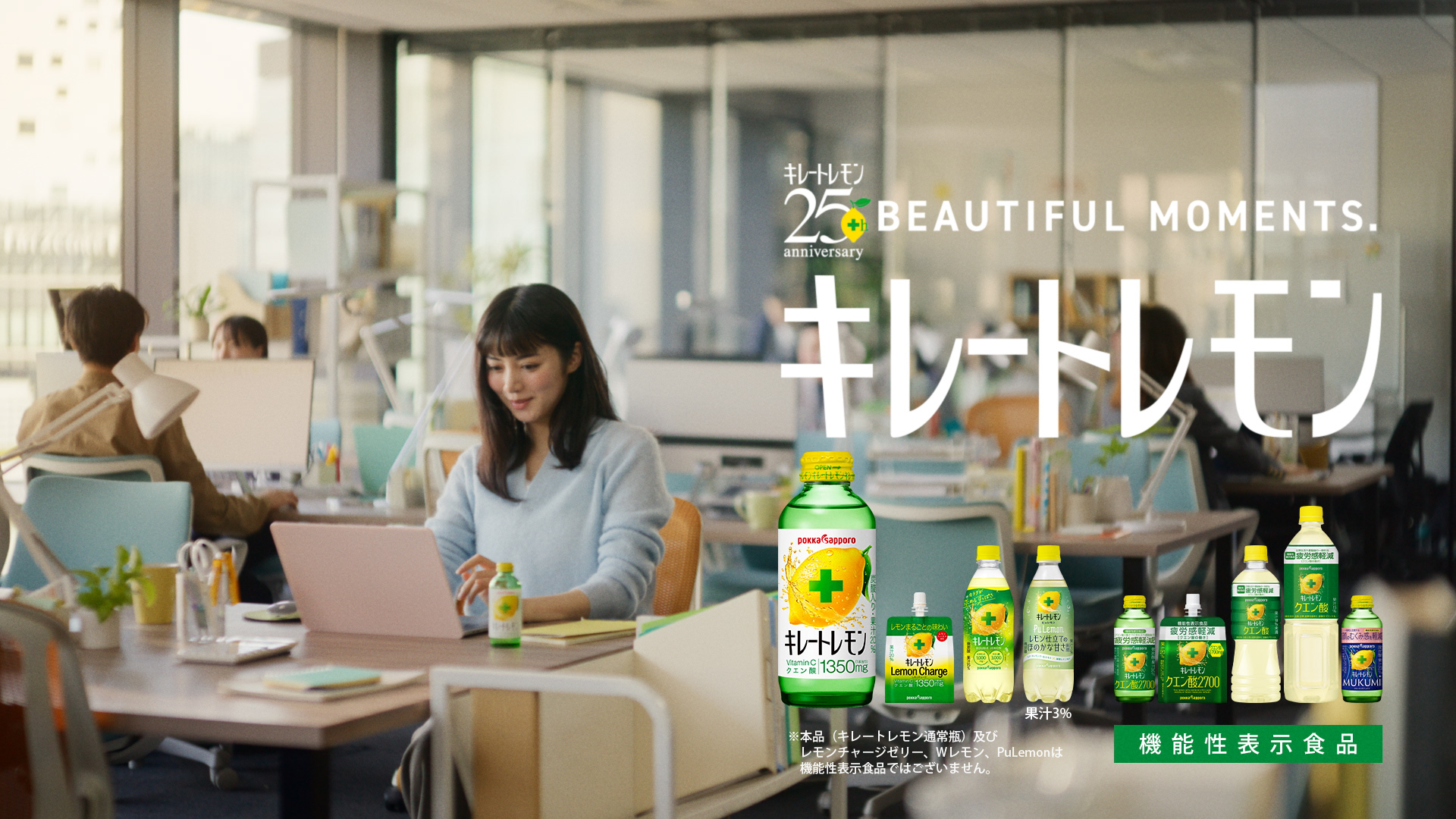 「キレートレモン」は、レモンの美味しさがギュッと詰まっていて、飲んで気持ちがスッキリするところがオススメポイントです。いつも頑張っている皆さんにも、ぜひCMを見ていただき、「キレートレモン」を飲んで自分らしく心地よい日々を過ごせるきっかけになったら、私も嬉しいです』