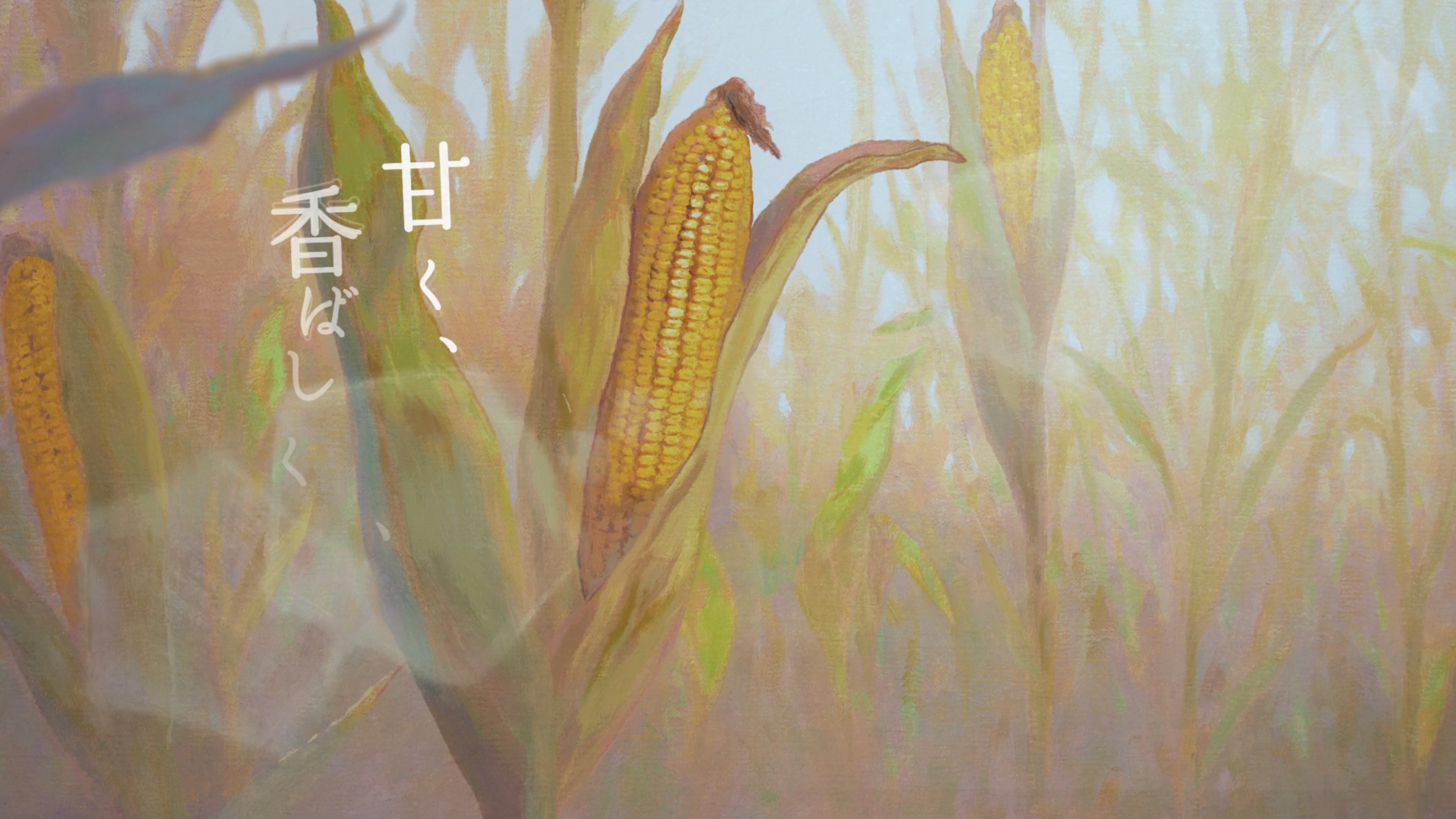 本CMでは、「北海道コーン茶」が持つ"日常の喧騒を忘れてやすらげる心地よさ"と、"素材や製法にこだわり抜いたものづくり"を、夏帆さんの演技と画家・野口俊介氏による油彩画が織りなす世界で表現しています。「北海道コーン茶」を味わう夏帆さんの背景には、野口氏が描き下ろした北海道の台地やとうもろこし畑を想起させる本格的な油彩画を使用。「北海道コーン茶」のボトルに描かれた、北海道の広大な畑のイラストを柔らかなタッチで再現しています。