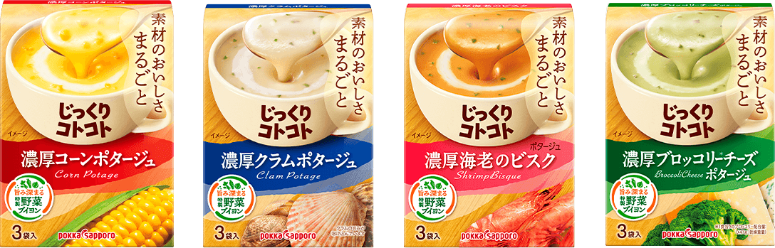 濃厚コーンポタージュ、濃厚クラムポタージュ、