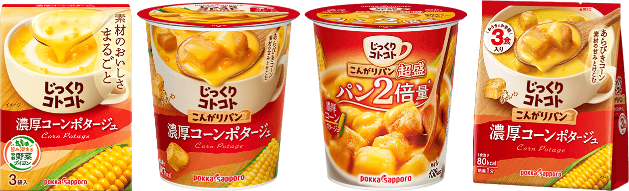 濃厚コーンポタージュ、濃厚クラムポタージュ、