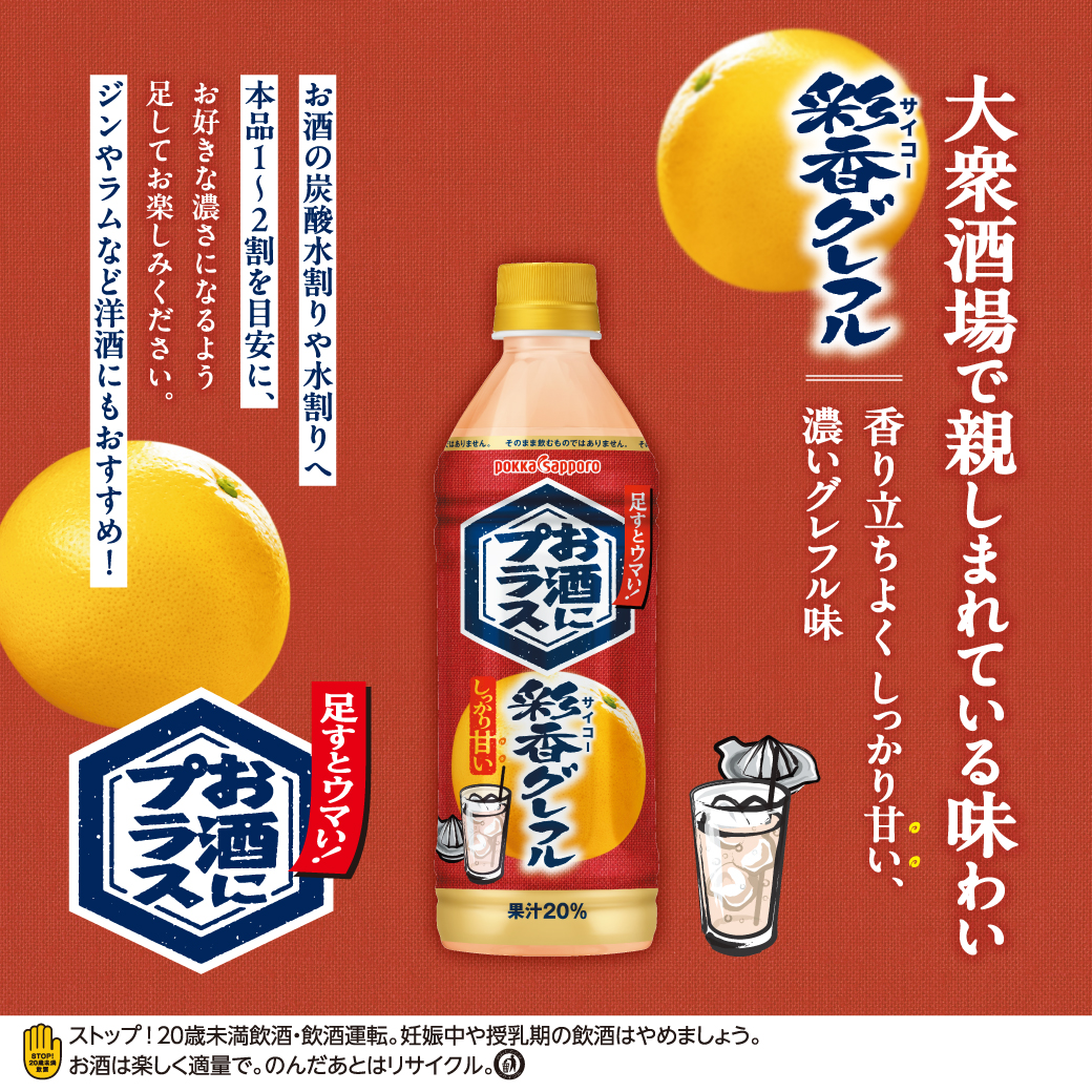 お酒をおいしく味わえる果汁割材です。大衆酒場で親しまれている味をイメージしました。お好みのお酒に足すだけで、華やかな香りと甘酸っぱいピンクグレフルの味わいを楽しめます。ホワイトスピリッツなどのお酒の炭酸水割りや水割りへ本品1割を目安に、お好きな濃さになるよう足してお楽しみください。
