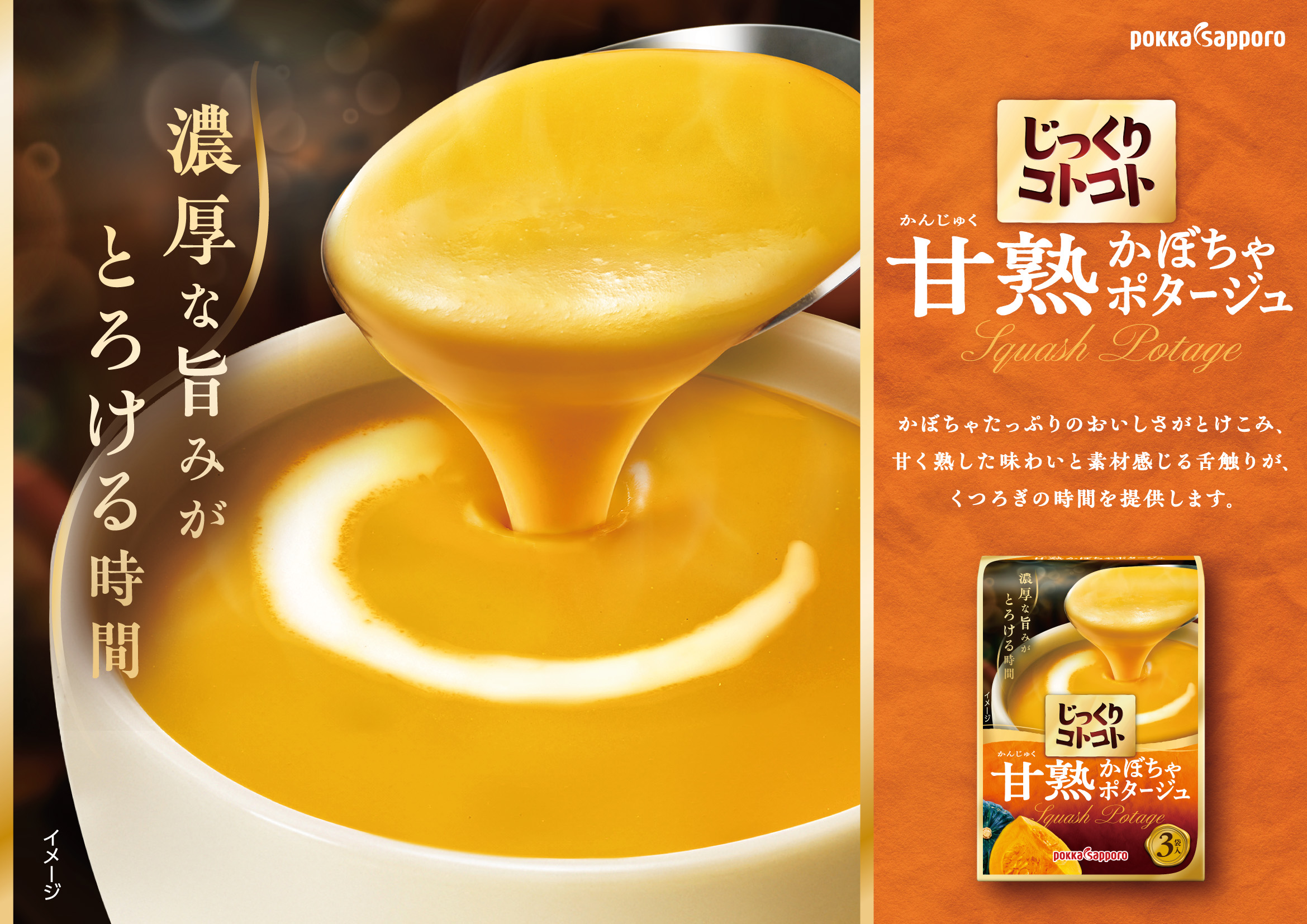 食べる人のことを想い、手間を惜しまず、時間をかけて、丁寧に作った濃厚な味わい。かぼちゃたっぷりのおいしさがとけこみ、甘く熟した味わいと素材感じる舌触りが、くつろぎの時間を提供します。